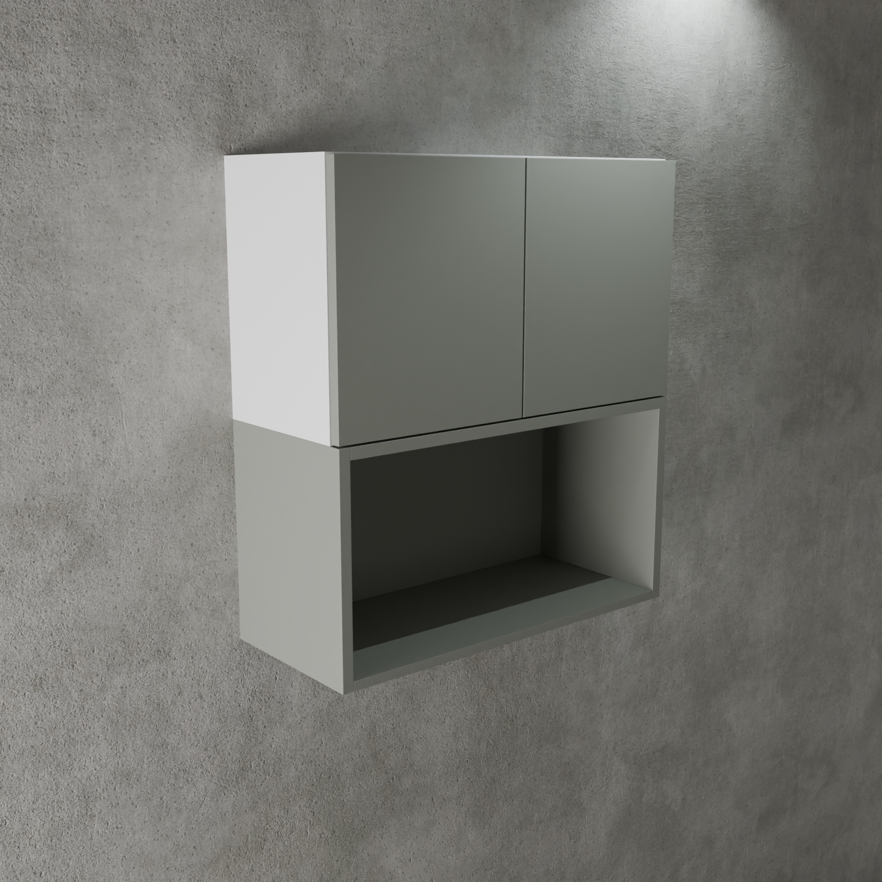 This Double Door Upper Cabinet features a an open shelf below. Its features include: